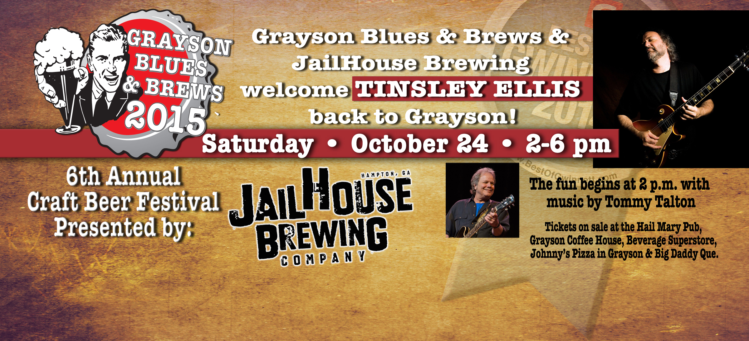 Join us Saturday, October 25, 2014 from 2:00 p.m. until 6:00 p.m. for an afternoon of music with Atlanta’s own Tinsley Ellis and tasting of the finest craft brews! Festival is held in Grayson City Park and Hosted by the Grayson Downtown Development Authority.