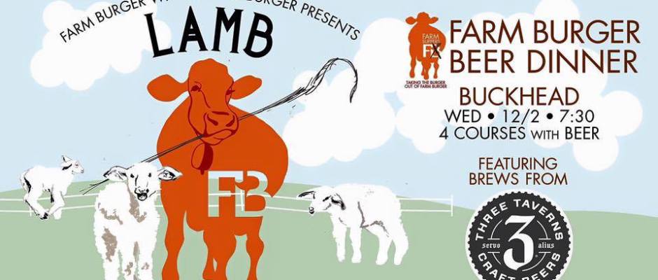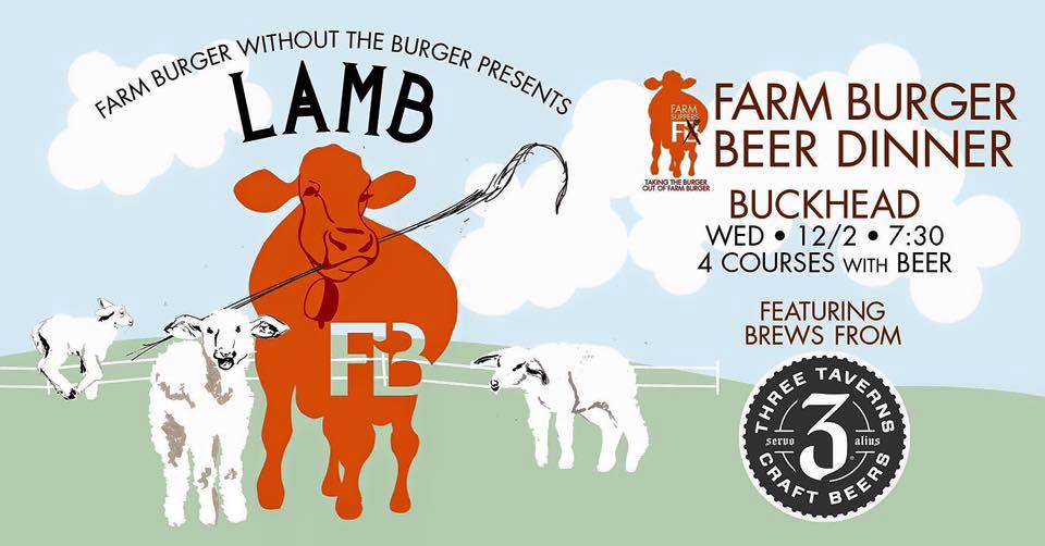 Beer Dinner at Farm Burger Buckhead 12/2 PM! 4 courses + Incredible brews from our friends at Three Taverns Craft Brewery! Call FBBH for your spot (404) 816-0603